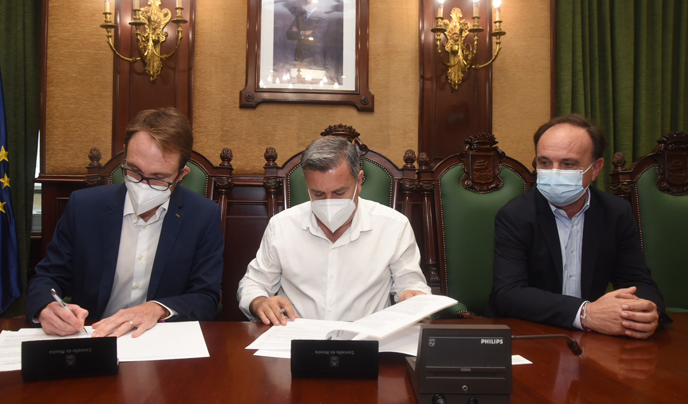 El alcalde Manuel Ruiz, el director general de FACSA José Claramonte, y Luis Basiero cómo director de saneamiento y depuración, estuvieron presentes en un acto en el que Ruiz Rivas transmitió su ilusión por poder firmar un contrato que les va a suponer a los vecinos de Ribeira una reducción en sus tasas de saneamiento (comenzarán a reflejarse en sus recibos a partir de 2022) y manifestó su confianza en que resulte fructífero tanto para el Ayuntamiento como para la empresa, de la cual destacó la alta valoración que les pareció a los técnicos su oferta.