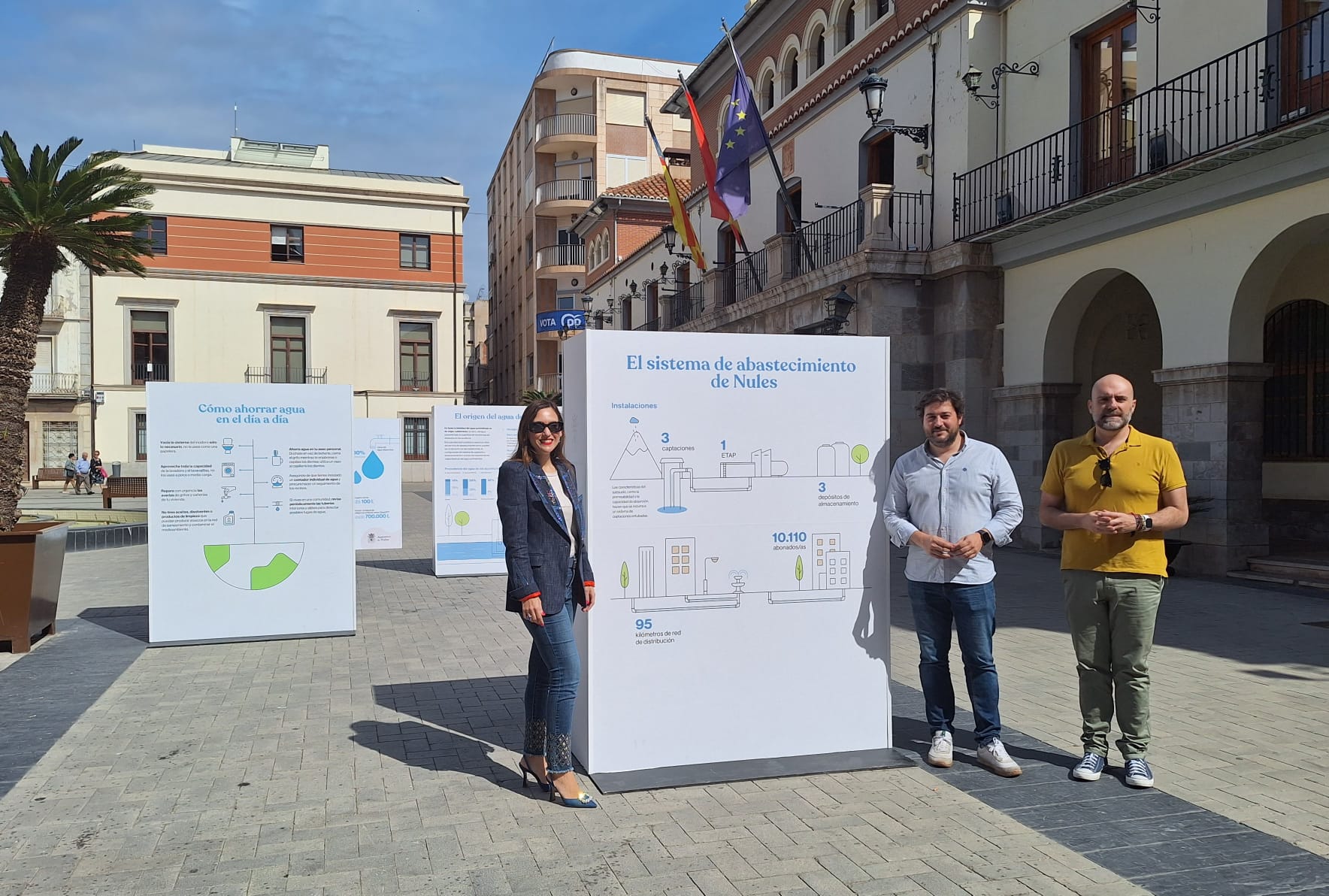 En este sentido, el concejal del Ciclo Integral del Agua del municipio, Adrián Sorribes; el concejal de Sanidad, Ramón Martínez; y la jefa de servicio y subdirectora de Gestión de Abonados y Mejora Continua de Facsa, Raquel Ginés, han visitado hoy una pequeña muestra instalada en un punto estratégico de la localidad, como es la Plaza Mayor de Nules.