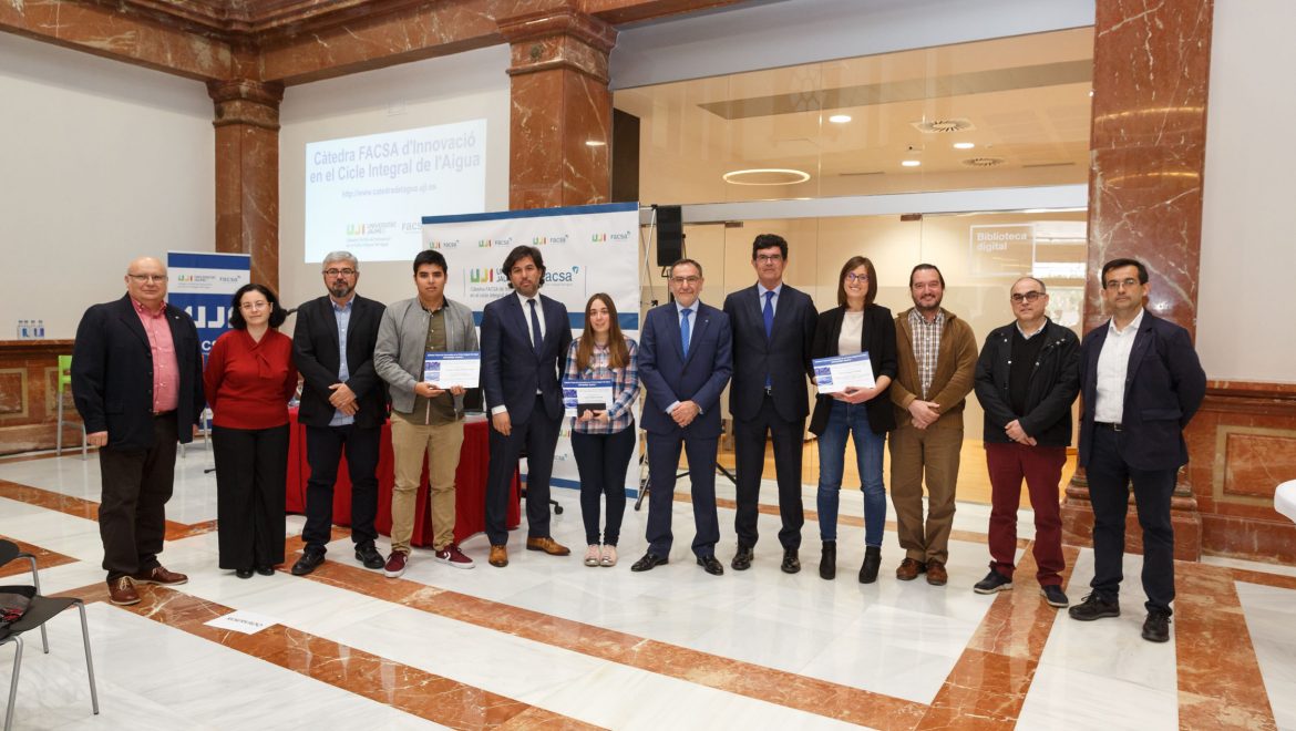 El Menador espai cultural ha acogido hoy el acto de entrega de la segunda edición de los Premios de la Cátedra FACSA de Innovación en el Ciclo Integral del Agua de la Universitat Jaume I. Unos premios que tienen como objetivo reconocer los mejores trabajos de final de grado, de final de máster y tesis doctoral aplicados al sector hídrico, además de visibilizar la importancia que entraña la correcta gestión del agua para el beneficio de la población mundial.